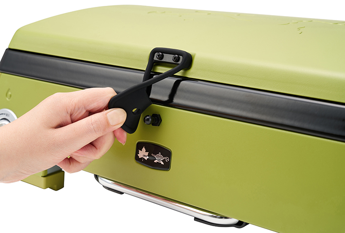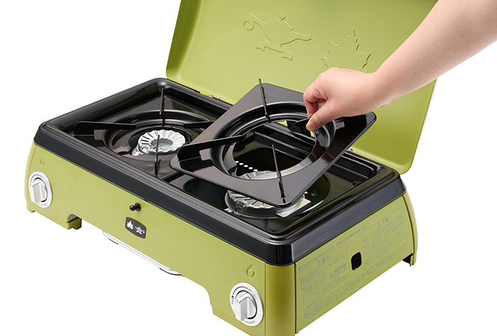 バーナーを本体に潜り込ますように配置した構造と、取り外し可能な風よけのトップカバー採用で、 風が吹いても火が消えにくく、アウトドアにも最適です。