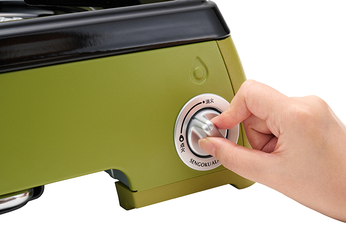 日本の伝統的な暮らしの道具「かまど」をイメージしたカセットコンロ。