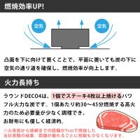 火力長持ちミニラウンドDECO4は、1個でステーキ4枚以上焼けるパワフル火力な炭です。
