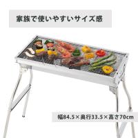 折りたたみ式の脚を開くだけで組立て不要!家族で使いやすいBBQグリル。 総重量:(約)2.7kg サイズ: [組立時](約)幅84.5×奥行33.5×高さ70cm [焼網大](約)縦44×横30cm [焼網小](約)縦30×横15cm 収納サイズ:(約)縦34×横64.5×高さ16cm 構成:本体、焼網、ロストル 主素材:ステンレス、スチール 性能/特長: ・脚部を開くだけの簡単セットアップグリル。 ・ロストル付き ・交換用の焼網大は別売りのベーシック焼網Mを、焼網小はベーシック焼網SSをお求めください。