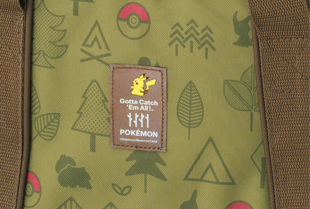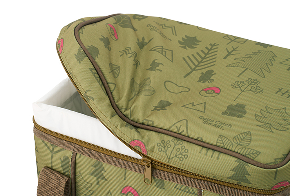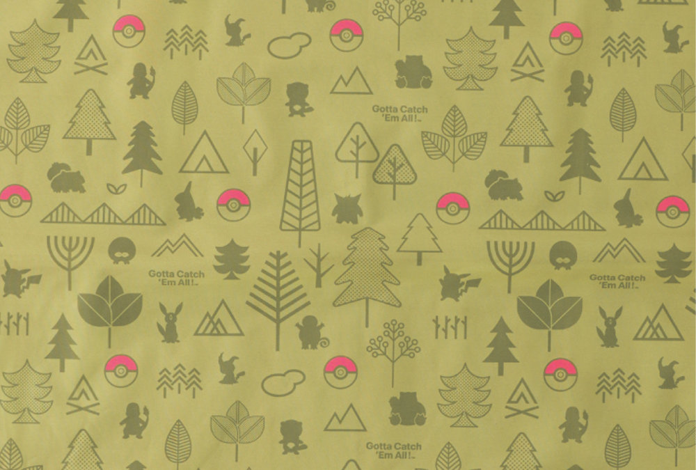 自然モチーフの中にポケモンたちのシルエットを散りばめたデザインで、アウトドアを楽しく彩ります。