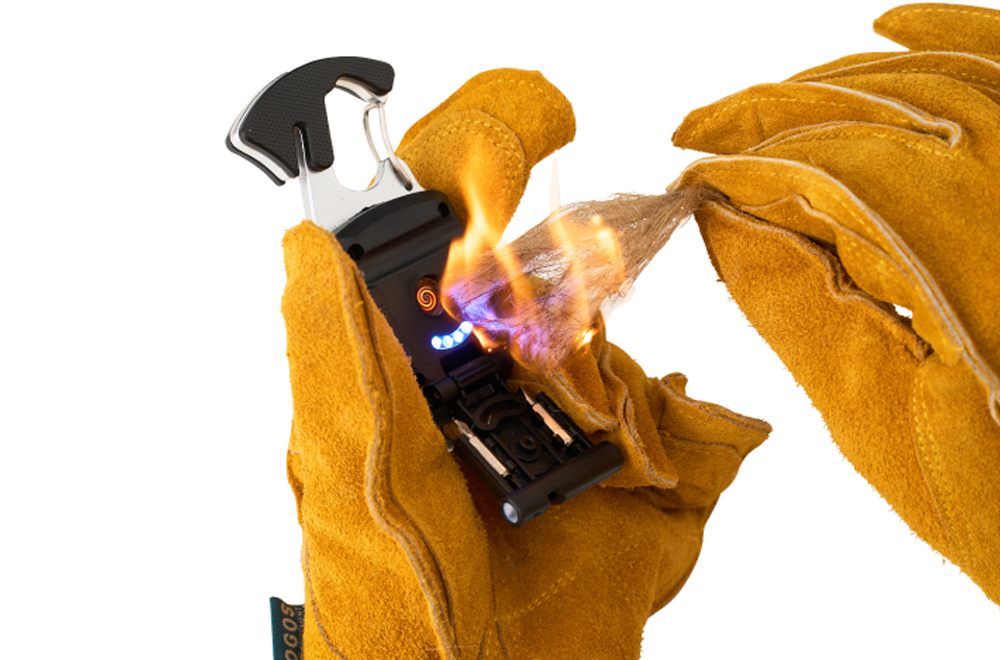 多機能な優れもの!着火もできるUSB蓄電式ライトライト、火おこし、ドライバー、カッター、栓抜き、ホイッスルの6つの機能をひとつに集約。
