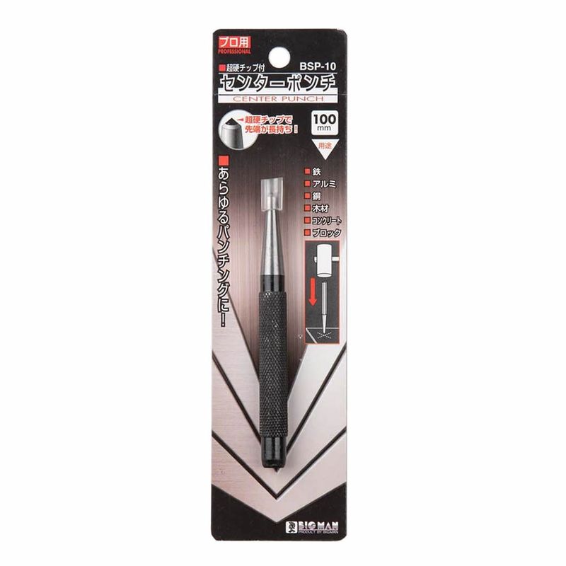 100mm/BSP-1/4962308606802/ポンチ/BIGMAN/ビッグマン/超硬センターポンチ/穴あけ/DIY/作業工具/大工道具