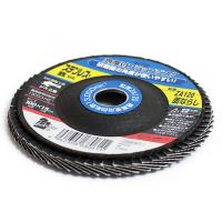 角度付フラップジスク。研磨面の角度が使いやすい。砥石に比べ跳ねにくく安心。テーパー角付だから、研磨面が大きく効率UP。