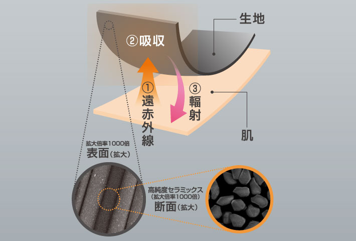 また、素材である繊維そのものに効果があるため、洗濯を繰り返しても機能が持続します。