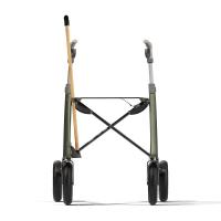 歩行器本体の座席フレームに取り付けて杖をしっかりと掴むクリップと、前輪上方のメインフレームに取り付けて杖を支える受け皿との2つのパーツで構成されます。