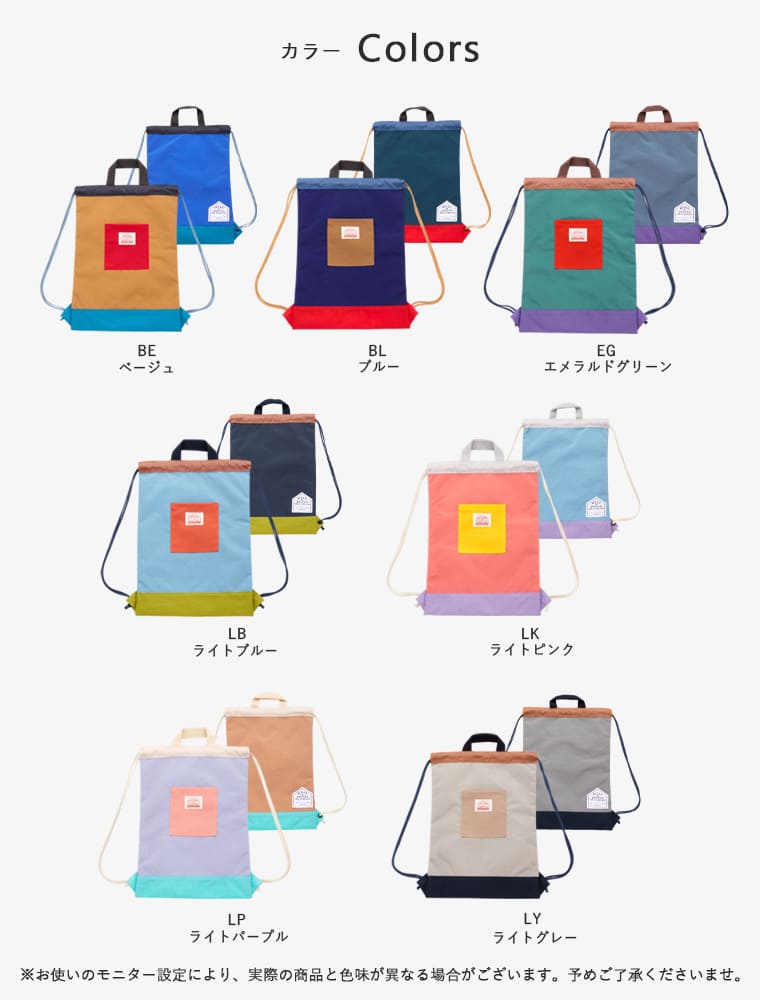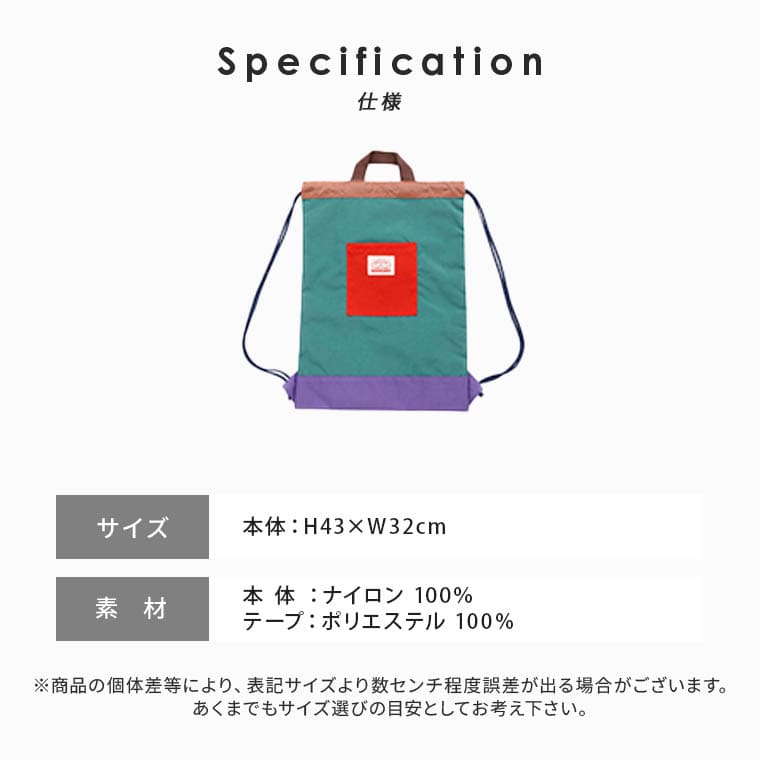 元気なマルチカラーが アクセントのキッズナップサックです。