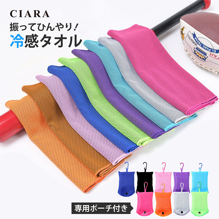 冷感タオル クールタオル ポーチ付き 収納袋 カラビナ ひんやりタオル 冷却タオル スポーツ プレゼント 1000円ポッキリ 冬