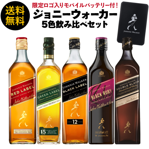 3/22 P+3% 送料無料 ロゴ入り モバイルバッテリー 付き ジョニーウォーカー 5色 飲み比べ セット 北海道・沖縄・離島は配送不可 長S