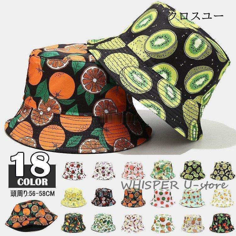 バケットハット リバーシブル メンズ レディース 18色 大きい ハット 帽子 キャップ つば広帽子 夏 果物柄 旅行 リゾート オレンジ スイカ 苺 レモン マンゴー