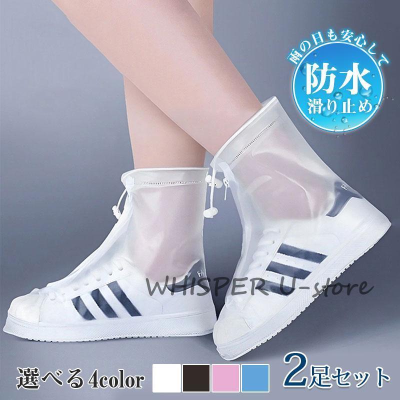 レインシューズカバー 2足セット 梅雨対策 シューズ カバー 汚れ防止 メンズ レディース ファスナー 防水 滑り止め 雨具 通学 通勤