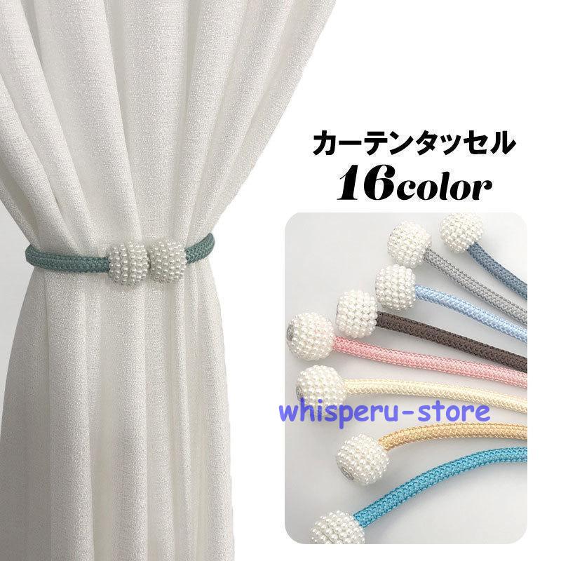 カーテンタッセル 2個セット マグネット式 磁石式 カーテンストラップ カーテン留め パール調 カラバリ豊富 おしゃれ 可愛い シンプル 模様替え