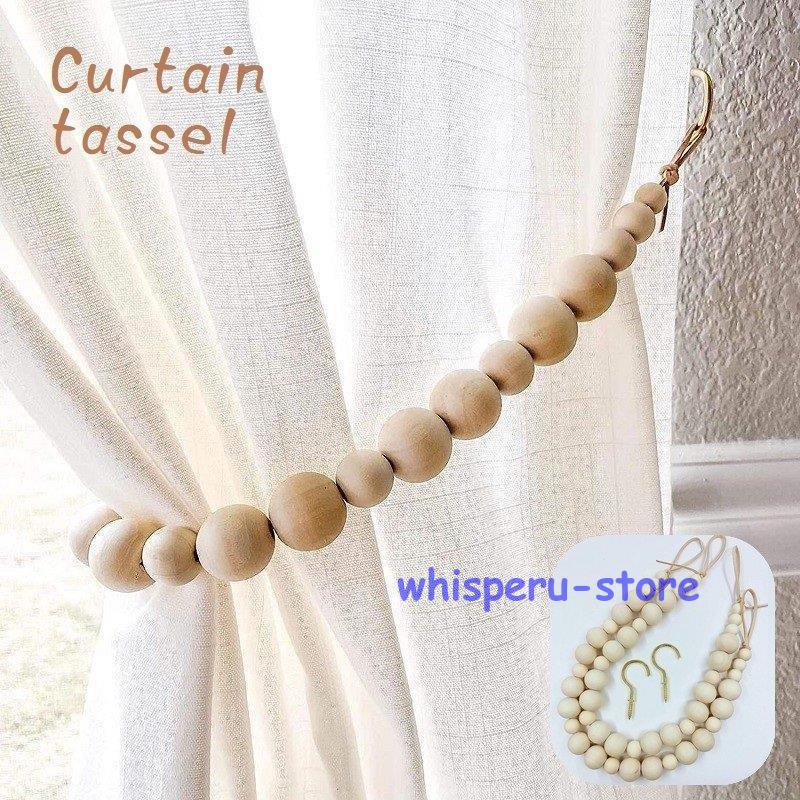 カーテンタッセル カーテン留め 2本セット カーテン用品 カーテンホルダー フック付き インテリア雑貨 ウッド ラウンド シンプル ナチュラル 北欧風