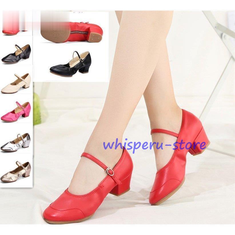 ダンスシューズ レディース 靴 ダンス 踊る シューズ 軽量 フェイクレザー 太ヒール ジャズダンス 社交ダンス 体操 練習用 発表会 舞台 モダン 演奏会22-26cm