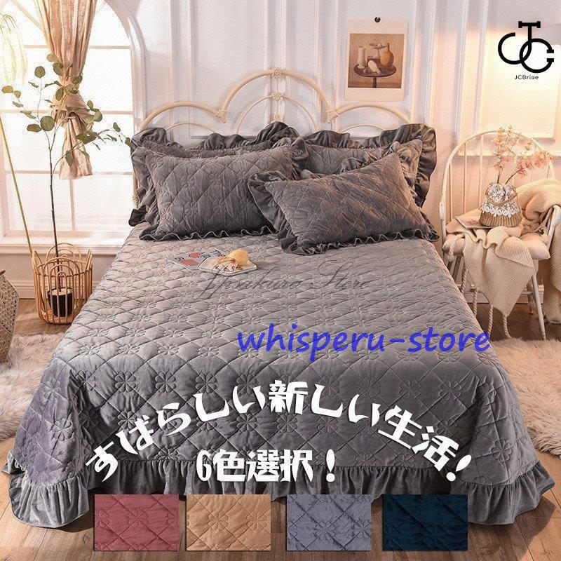 ベッドカバー ベッドスプレッド 北欧 アンティークおしゃれ ダブルフランネル 四季通用 洗濯可能 ベッドカバー/枕カバー2枚