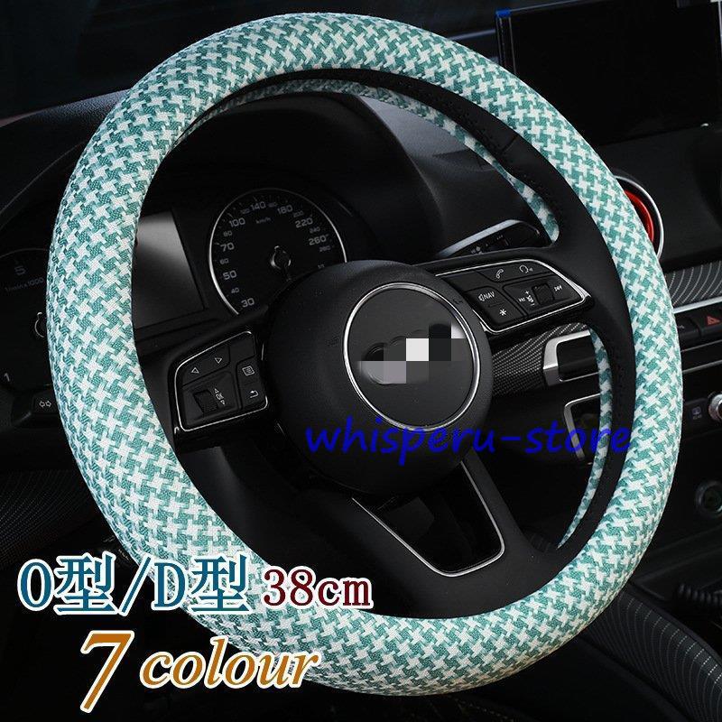 ハンドルカバー ステアリングカバー 普通車 軽自動車 ちどり格子 38cm おしゃれ O型/D型 内装 高級感 ドレスアップ 簡単装着 撥水 握りやすい 通気 汎用