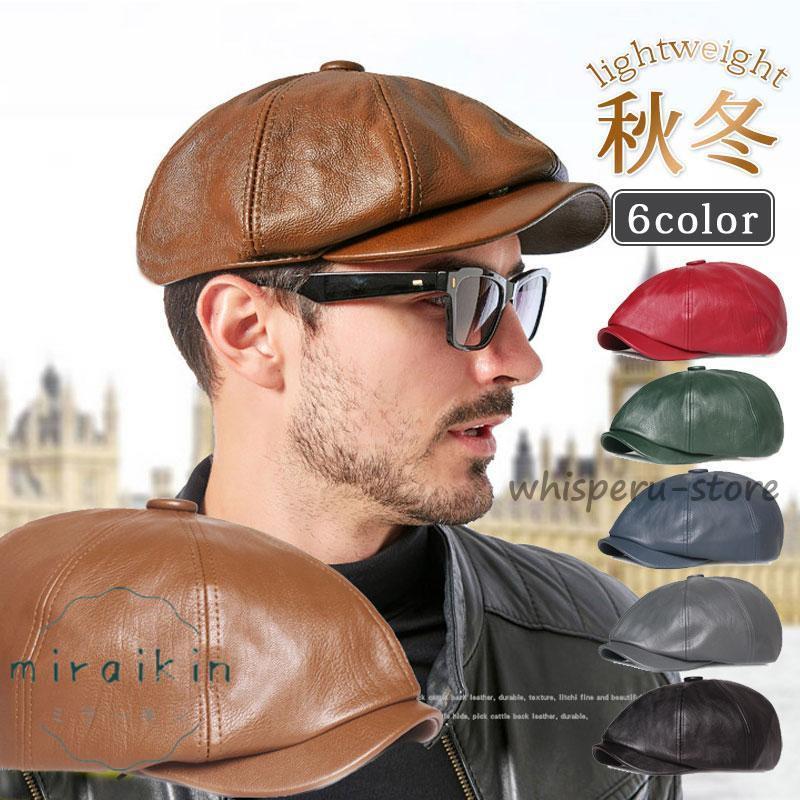 キャスケット メンズ ハンチング 帽子 レザー PU レディース キャップ ぼうし 秋冬 ゴルフ帽 軽量 アウトドア カジュアル 父の日 ギフト 20代 30代 40代 50代