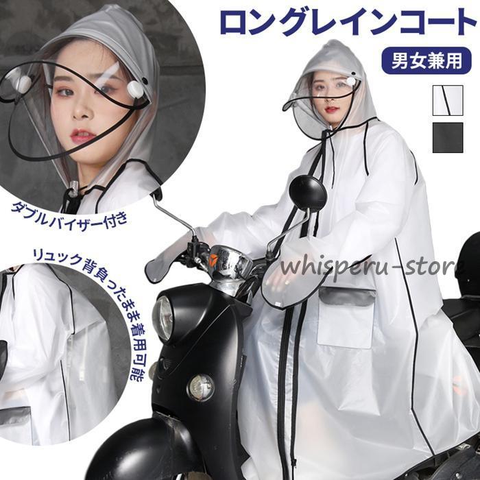 レインコート 男女兼用 ロング丈 自転車 通学 通勤 リュック 保育園 レインポンチョ 二重ツバ キャンプ 防災 バイク 野外