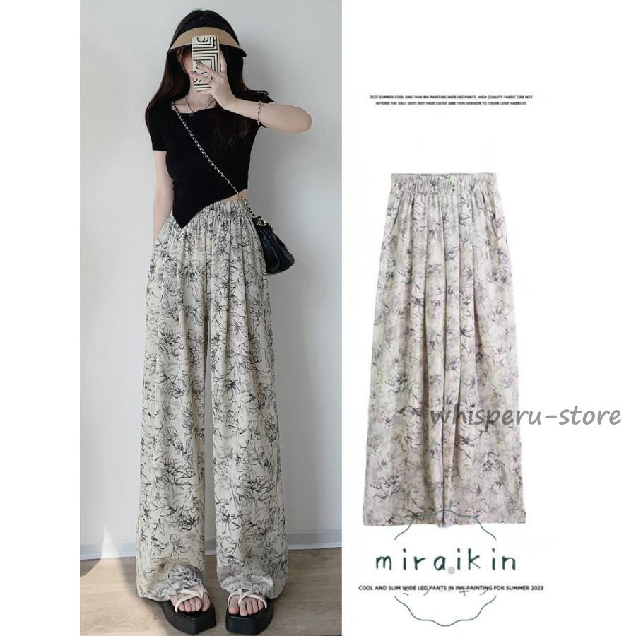 ワイドパンツ ガウチョパンツ レディース スカンツ スカーチョ 体型カバー 春夏 シフォン ガウチョパンツ 花柄 ウエストゴム 美脚 ポケット付き 着痩せ 春 夏