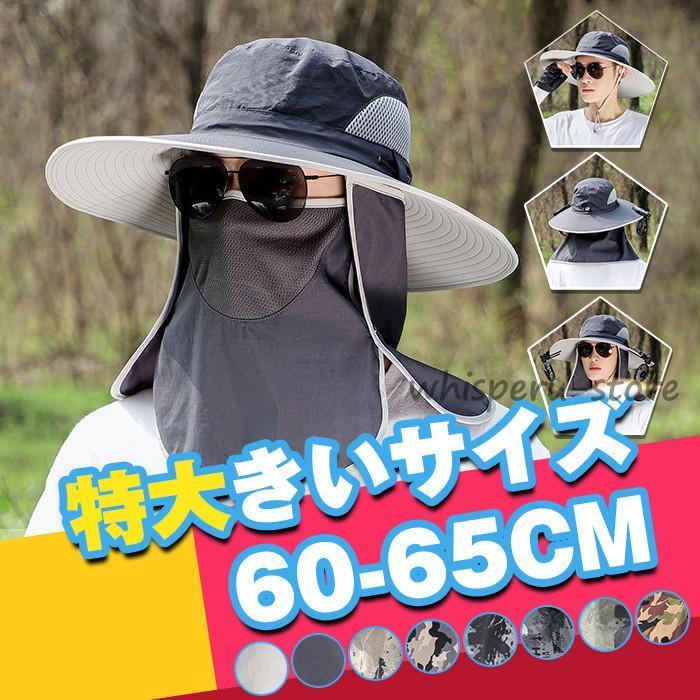 サファリハット メンズ 大きいザイズ 帽子 特大きいサイズ60-65cm ツバ広げ 360度全方位UVカット UPF50 つば広 UVカット帽子 紫外線対策 日除け 通気速乾