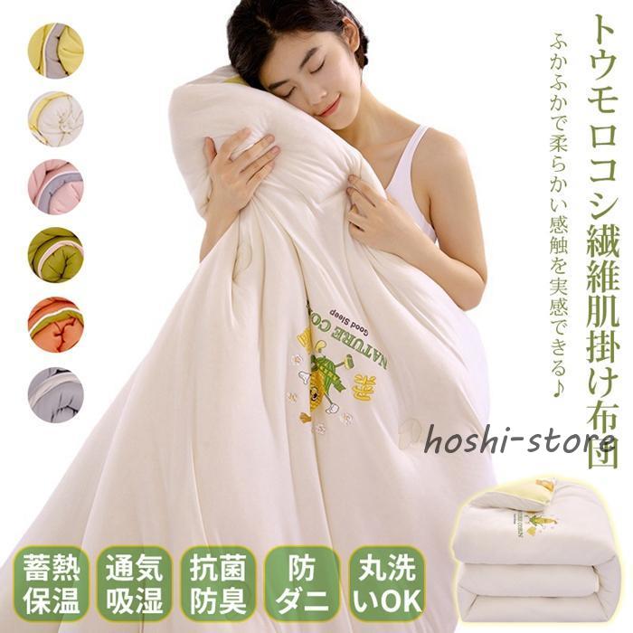 肌掛け布団 掛け布団 トウモロコシ繊維 ふとん 合繊 ダブル クイエローン エコ 超柔らかい 体にフィット 刺繍 防ダニ 吸湿発熱 蓄熱保温 丸洗い