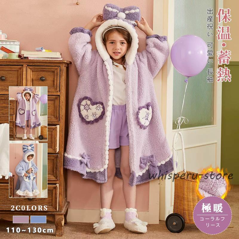 ルームウェア バスローブ キッズ パジャマ ガウン 寝巻き 着る毛布 部屋着 冬 女の子 子供パジャマ ロング ナイトウェア 前開き 長袖 もこもこ あったか