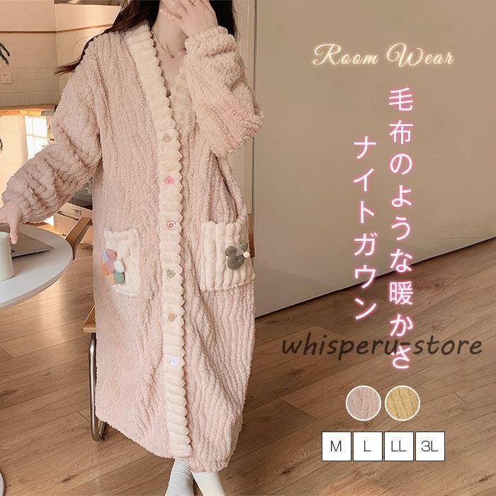 ガウン 冬 ルームウェア 着る毛布 パジャマ レディース バスローブ かわいい 長袖 ナイトガウン 風呂上がりもこもこ 寝巻き 女性用 ふわふわ 前開き 裏起毛