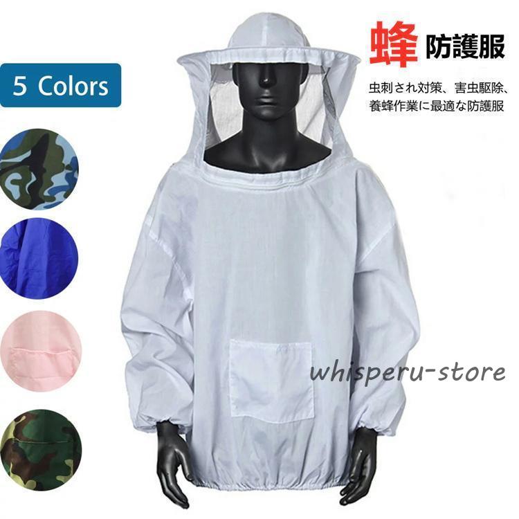 蜂防護服 養蜂用ジャケット フェイスネット付き 作業服 上着 蜂 害虫駆除 蚊対策 虫よけ 草刈り ガーデニング アウトドア 農作業 通気性 軽量