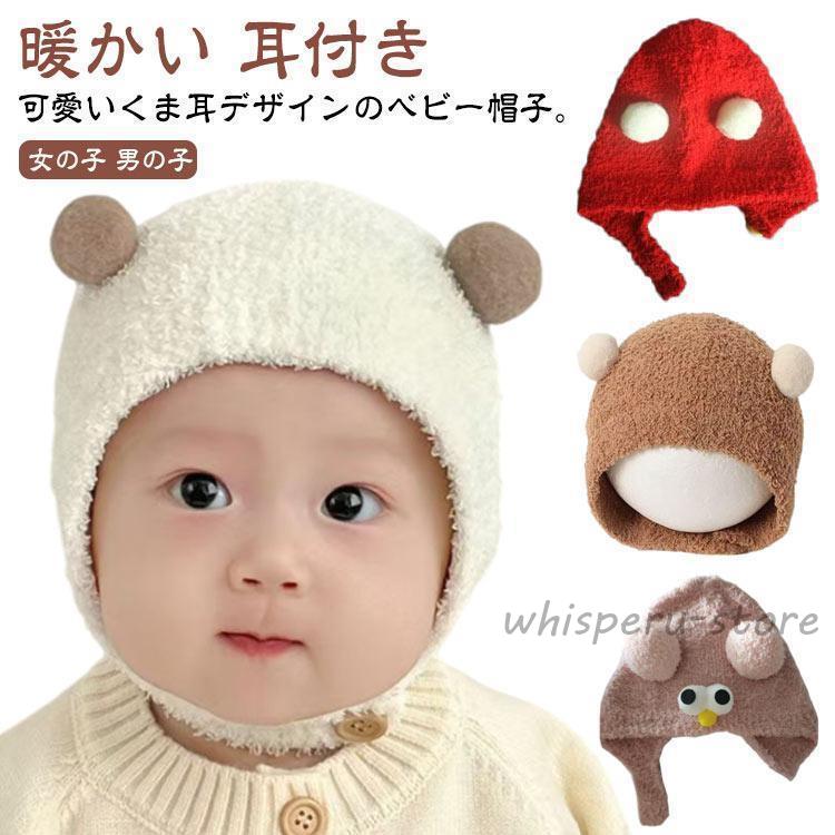 ニットキャップ 暖かい ベビー クマ くま 帽子 クマさん 新生児帽子 キッズ ベビー帽子 赤ちゃん帽子 冬 帽子 子供 くまちゃん 耳付き ニット帽