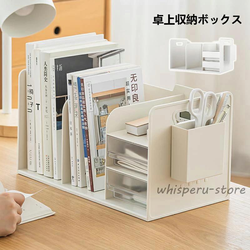デスク周りの小物をまとめて収納できる多機能ブックスタンド 卓上収納 組み立て不要 デスク 収納 デスク上置き棚 ペン立て付き 卓上ラック デスクオーガナイザー