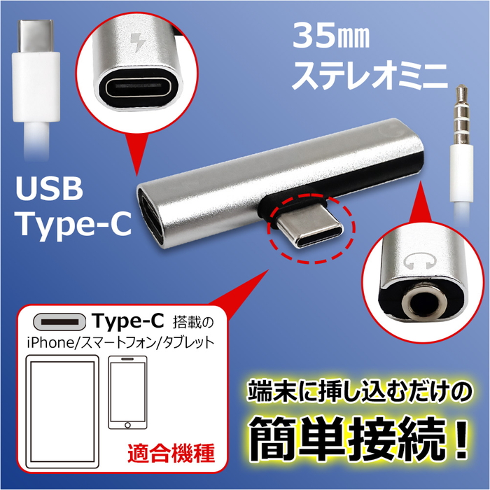 コネクター形状:USB-C(オス) → 3.5mmステレオミニプラグ(メス) ? USB-C 充電端子(メス)