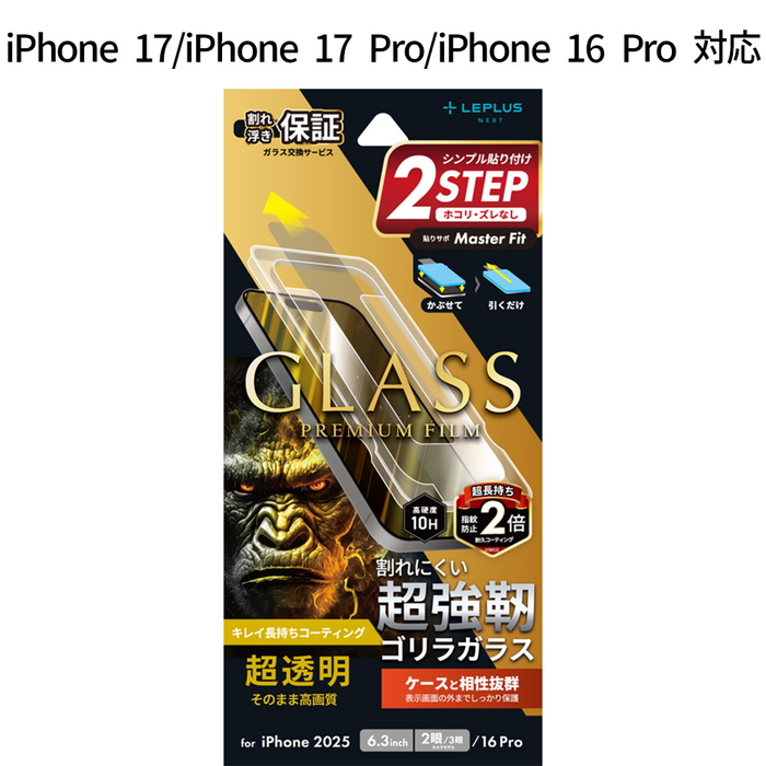 iPhone17 iPhone17Pro iPhone 16 Pro ガラスフィルム GLASS PREMIUM FILM ゴリラガラス 超透明 しなやか 強靭 ケース干渉しない 全画面保護 指紋防止