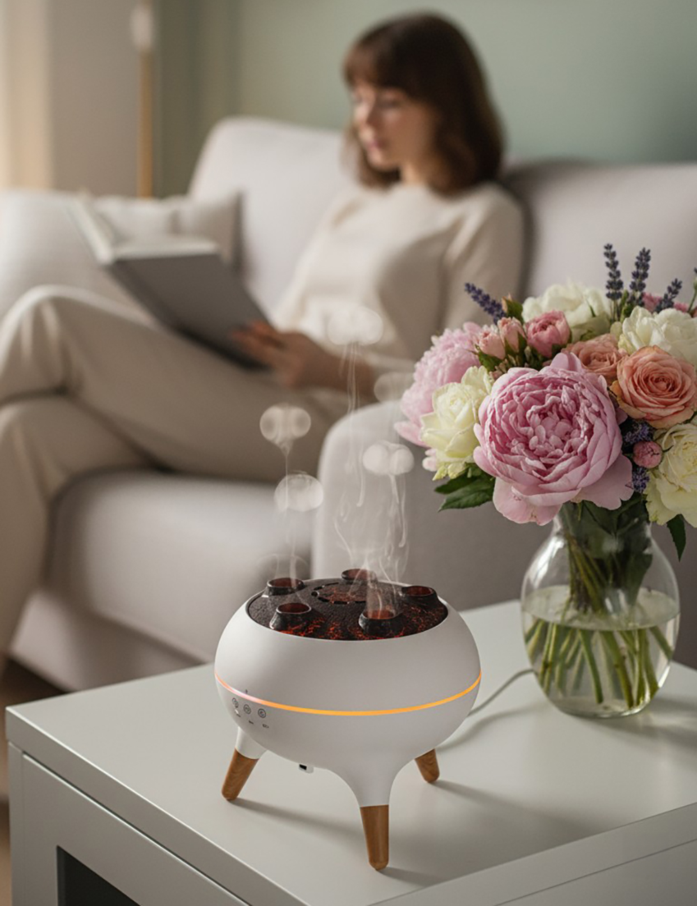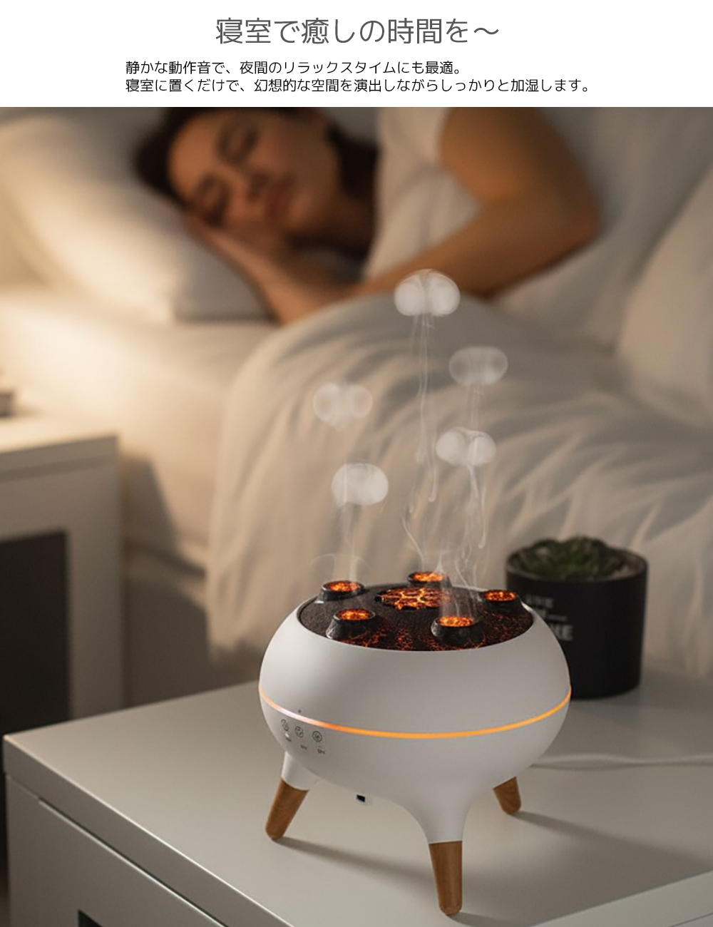 リビングや寝室に置くだけで、幻想的な空間を演出しながらしっかりと加湿します。