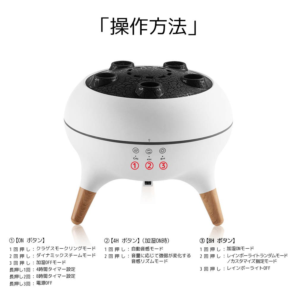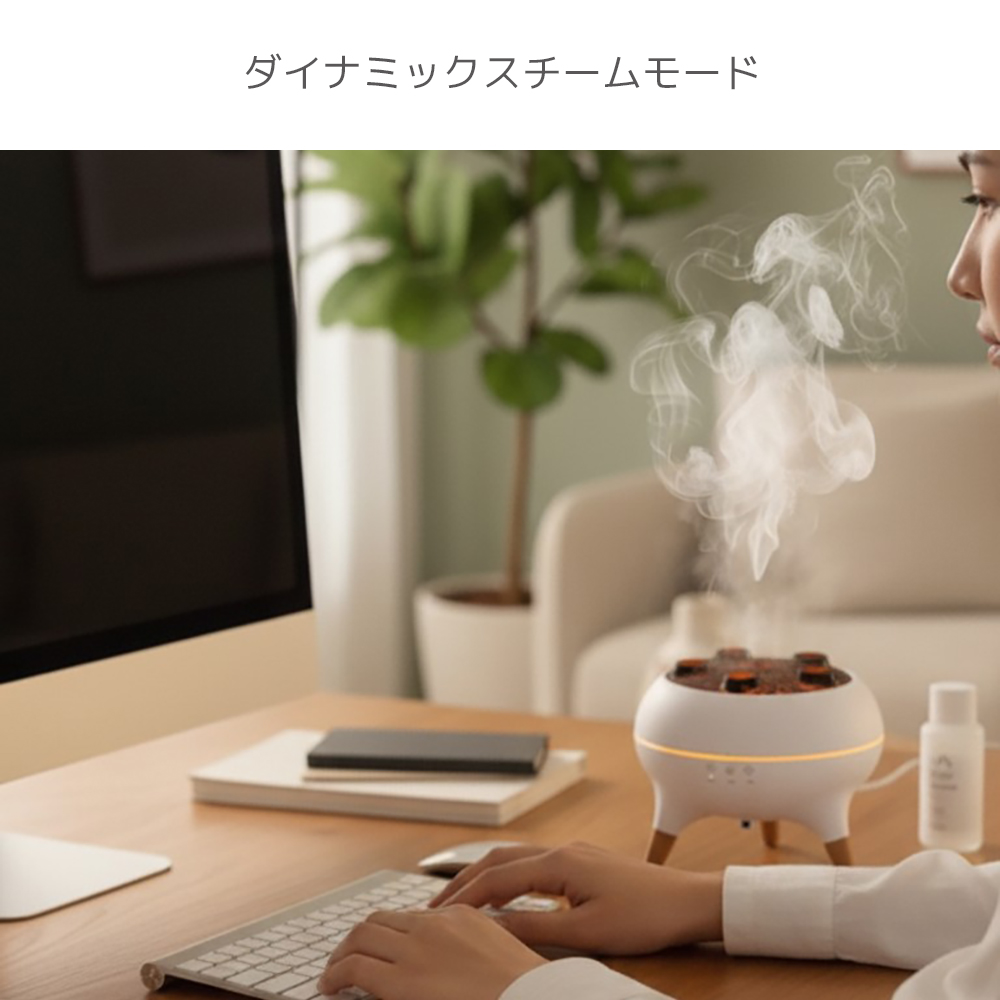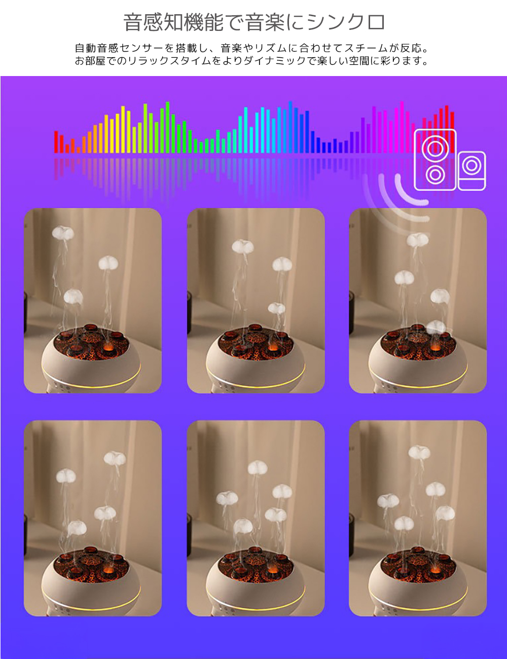 自動音感センサーを搭載し、音楽やリズムに合わせてスチームが反応。