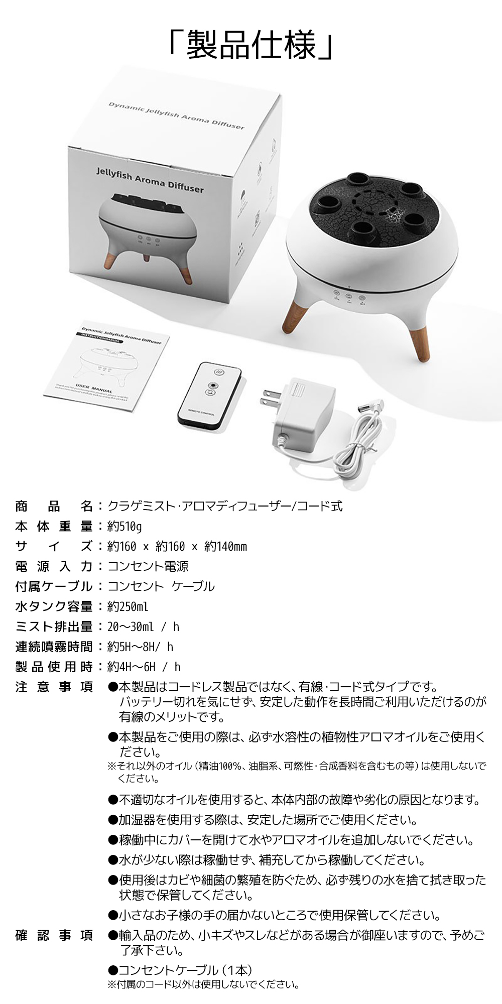 | 商品名 | クラゲミスト・アロマディフューザー/コード式 |
