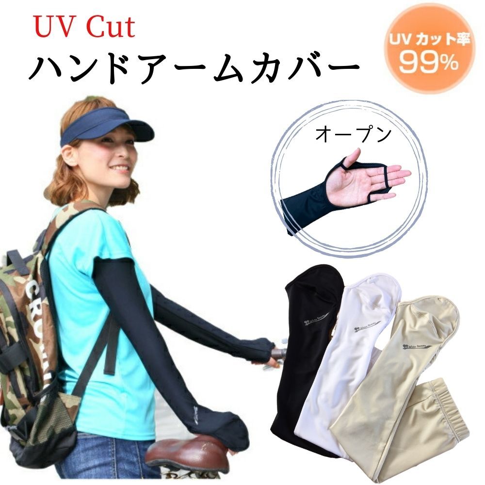 ハンドアームカバー MLサイズ UVカット UV アームカバー ハンドカバー 手袋 手 腕 手の甲 夏用 冷感 紫外線対策グッズ 白 黒 送料無料 White Beauty