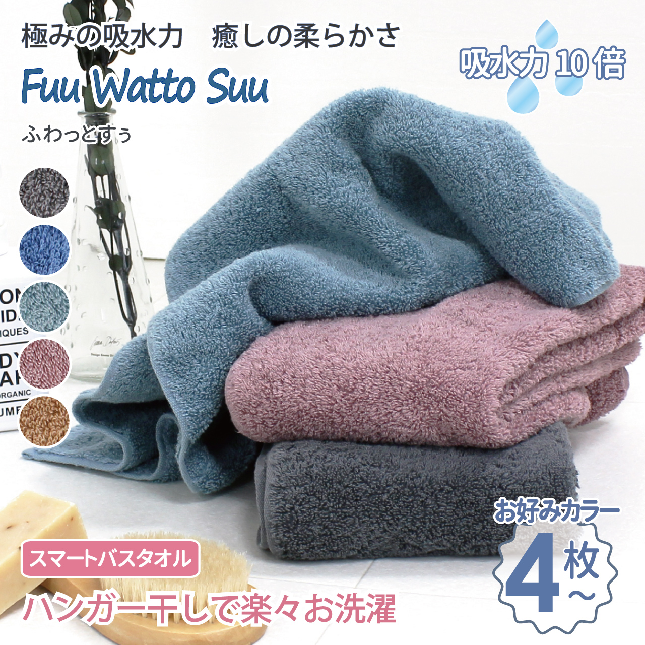 タオル バスタオル ミニバスタオル まとめ買い セット 吸水性抜群 超吸水 高吸水 吸水 速乾 ふわふわ 柔らかい 毛羽落ちしない 4枚 ふわっとすう