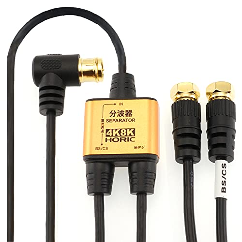 ホーリック アンテナ分波器 【4K8K放送(3224MHz)/BS/CS/地デジ/CATV 対応】 極細ケーブル一体型 2m/30cm ブラック