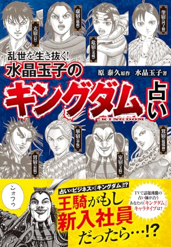 コミックス累計1億部へ。『キングダム』初の占い本がついに登場! コミックス70巻の刊行をもって累計発行部数が1億部を突破。(2023年11月17日現在) 大人気漫画『キングダム』と、的中率抜群とテレビでも話題の占い師・水晶玉子が奇跡のコラボ! 「『キングダム』占い」には、信・?政・王騎・李牧・羌?など『キングダム』でおなじみのキャラクターが27人登場。占いと原作の名シーンのリンクも見どころです。 「『キングダム』占い」は全27タイプ。 ・基本性格 ・ビジネスシーンにおける得意戦術 ・若手・管理職・トップ・フリーランス……ポジション別の戦い方 ・ベストな上司・部下・同僚・ライバルは ビジネス相性占い ・2024年~2033年の10年間を占う「出世すごろく」 ・金運ベスト3、カリスマベスト3は 詳細ランキング などビジネスシーンを中心に徹底解説します。 「怖いほど当たる」と評判のオリエンタル占星術をもとにした占いだから、読んだ人から運気上昇の波に乗れる! 乱世を生き抜くためのヒントが見つかる、『キングダム』ファンもオリエンタル占星術ファンもきっと満足できる内容になっています。
