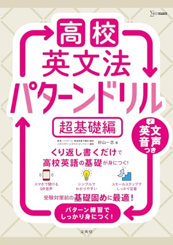 音声再生に対応してさらにパワーアップ! パターン&反復練習で英文法がしっかり身につく!アウトプットすることで英文法の知識が定着する! ※本書は既刊『高校基礎 英文法パターンドリル』に、新たに英文音声を追加したものです。学習内容に変更点はございません。 【特長1】英語の土台がしっかり固められる! 本書は、中学で学習した英文法と高校で学習する英文法の基礎事項をパターン練習で確実に身につけるためのドリルです。 中学既習・高校基礎レベルの英文法を72セクションに細かくわけているので、基礎の基礎からじっくり取り組めます。 【特長2】くり返し書いて覚える! Q1選択問題→Q2並べかえ問題→Q3英作文問題と問題をくり返し練習しているうちに英文法が自然と身につきます。 【特長3】1セクション2ページ構成で手軽にサクサクできる! 1セクション見開き2ページなので、英語が苦手でも無理なく取り組めます。わからないことは各セクションの最初の「ミニ解説」やセクション末のone more ポイントできちんと確認できます。 【特長4】QRコードで手軽に音声再生! 紙面上のQRコードを読み取ることで、スマート