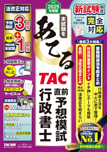 【特別Web講義付き】2025年度版 本試験をあてる TAC直前予想模試 行政書士【予想模試3回分+最新令和6年度本試験1回分/解答用紙DLサー