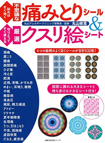 医師が開発した、貼るだけで痛みが消え生活習慣病などにも有効なシールと、 運気もアップするクスリ絵シートの豪華付録つき 痛みとりシールは、貼るだけで痛みが消えていくという不思議なシールです。 しかも即効性があり、貼って5分もしないうちに効果を感じる方もいます。 また、痛みに限らず、生活習慣病やアレルギー疾患、目や耳の不調など、幅広い症状に対応します。 一方のクスリ絵シートは、著者の丸山修寛医師が数学や物理学、医学の概念をとり入れて、 生命エネルギーの調整や自然治癒力の向上に役立つ絵柄を作成したもので、 丸山医師のクリニックでも、すばらしい効果をあげています。 薬に勝るとも劣らない症例もあることから、「クスリ絵(薬絵)」と呼んでいます。 今回は、大きなシートとカードサイズのシートを付けしました。 そして各シートの裏面には、クスリ絵のパワーをアップするための特別な絵柄も入れました。 大きなシートは部屋などに飾り小さなシートは名刺入れや財布に入れて携帯するのがおすすめです。 痛みとりシールとクスリ絵シートの効果を体感してください。