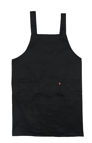 [エドウィン] エプロン 二段階調節可能な後ろ腰ボタン 無地 H型 両サイドポケット ブラック M