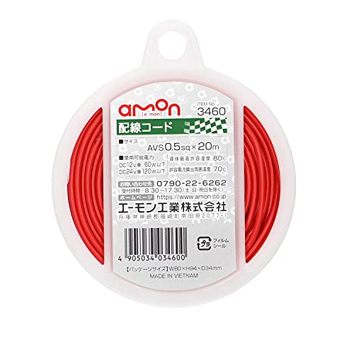 エーモン(amon) 配線コード 0.5sq 20m 赤 3460