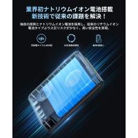 | 業界初ナトリウムイオン電池搭載 | 独自の技術とナトリウムイオン電池を採用し、 従来のリチウムイオン電池タイプより火災リスクが少なく、 高い安全性を実現。 |