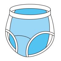 吸水帯一体型、安心ゆとりの吸水帯、ウエストゴム交換可能、ウエストゴム2本ゴム仕様で優しい肌あたり、取替用ゴム付