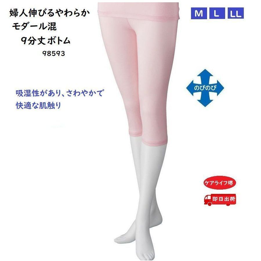 婦人伸びるやわらかモダール混9分丈ボトム 98593やわらかいストレッチ性で肌にやさしくフィット ケアファッション