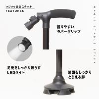 マジック安定ステッキ FS-343 | 5段階高さ調整可能 | LEDライト搭載 (約18ルーメン) | 耐荷重100kg | 軽量アルミ製 | 滑り止め接地脚