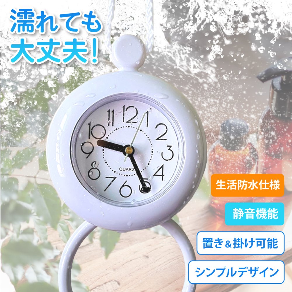 【置いても掛けてもOK】バスクロック お風呂 時計 生活防水 浴室 掛け時計 置き時計 2WAY ウォールクロック 静音 おしゃれ アナログ ポイント消化 送料無料