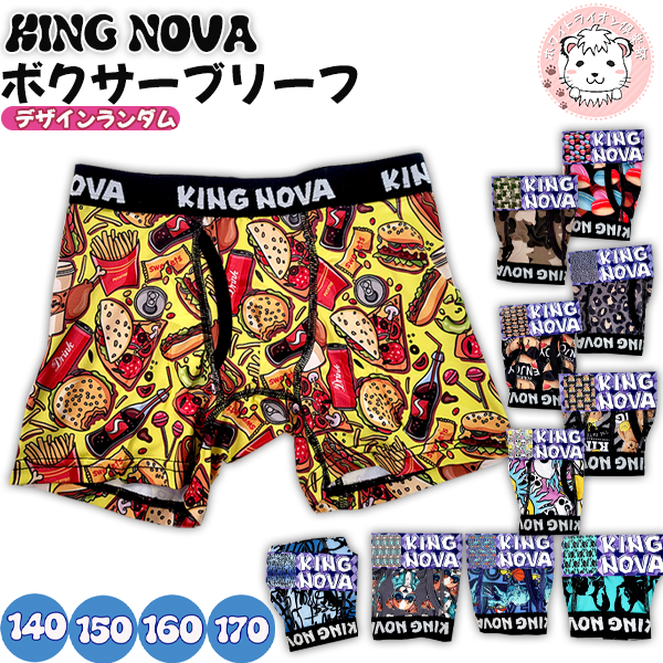 (アウトレット)KING NOVA ジュニア ボクサーパンツ プリント柄 アウトゴム 前開き ボクサーブリーフ パンツ 140cm-170cm キングノバ ボーイズ 男の子 下着 肌着